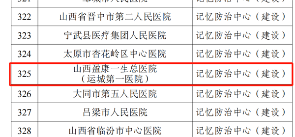 近日,國家衛(wèi)生健康委能力建設(shè)和繼續(xù)教育中心官網(wǎng)發(fā)布了《關(guān)于公布2023年高級認(rèn)知障礙診療中心和記憶障礙防治中心(含社區(qū)記憶門診)遴選結(jié)果的通知》,山西盈康一生總醫(yī)院入選“國家記憶防治中心”建設(shè)單位!