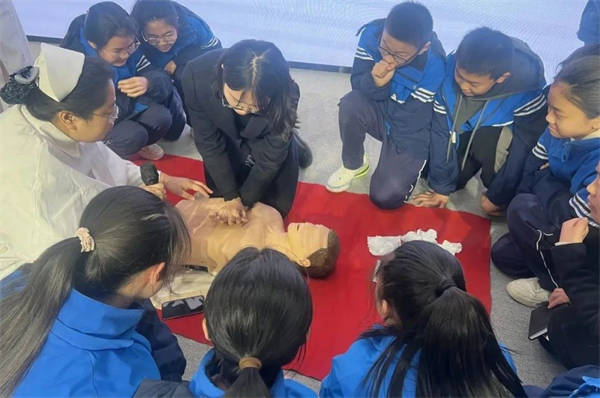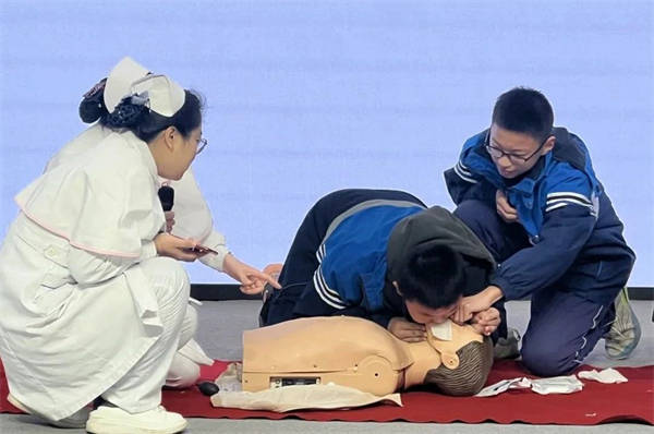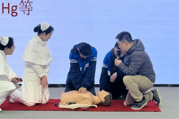 師生們認真聽講,踴躍參與現(xiàn)場互動小環(huán)節(jié),并通過實際操作掌握了科學、正確的應急救護方法。