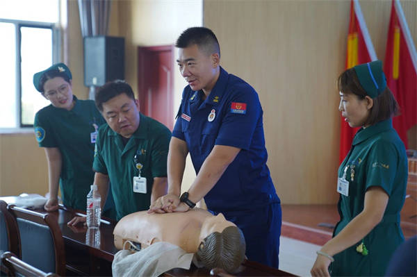 儀式后,我院急診科醫(yī)護(hù)人員為現(xiàn)場(chǎng)消防員進(jìn)行了應(yīng)急救護(hù)知識(shí)培訓(xùn)。